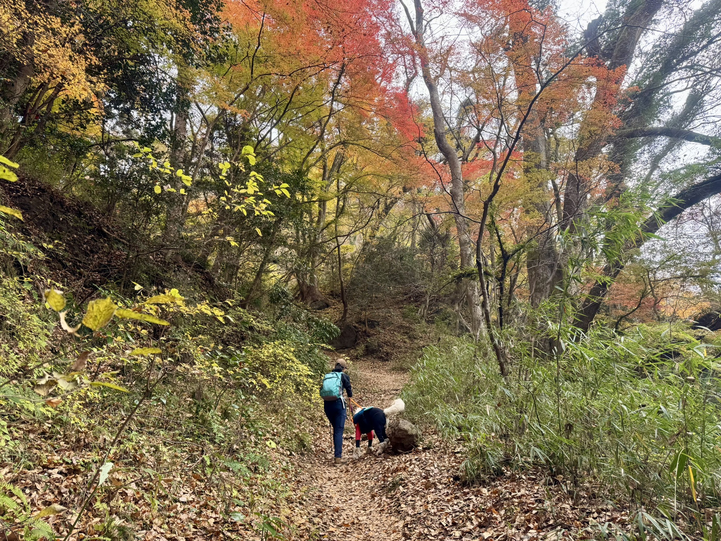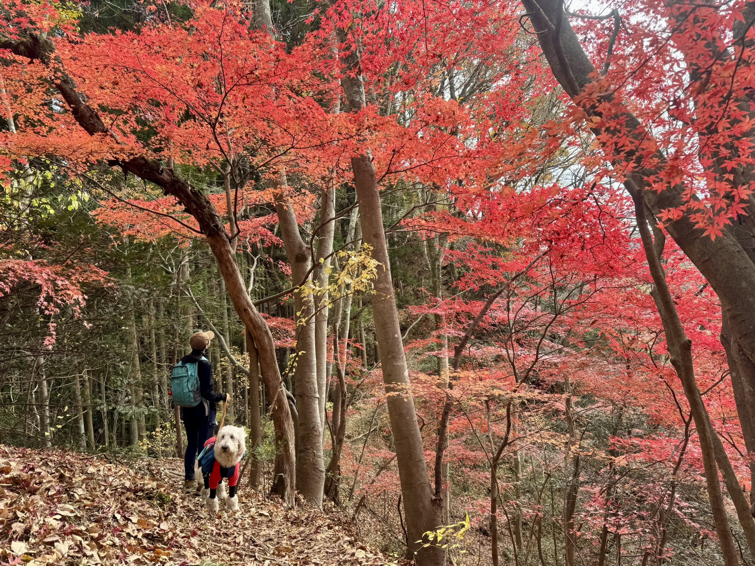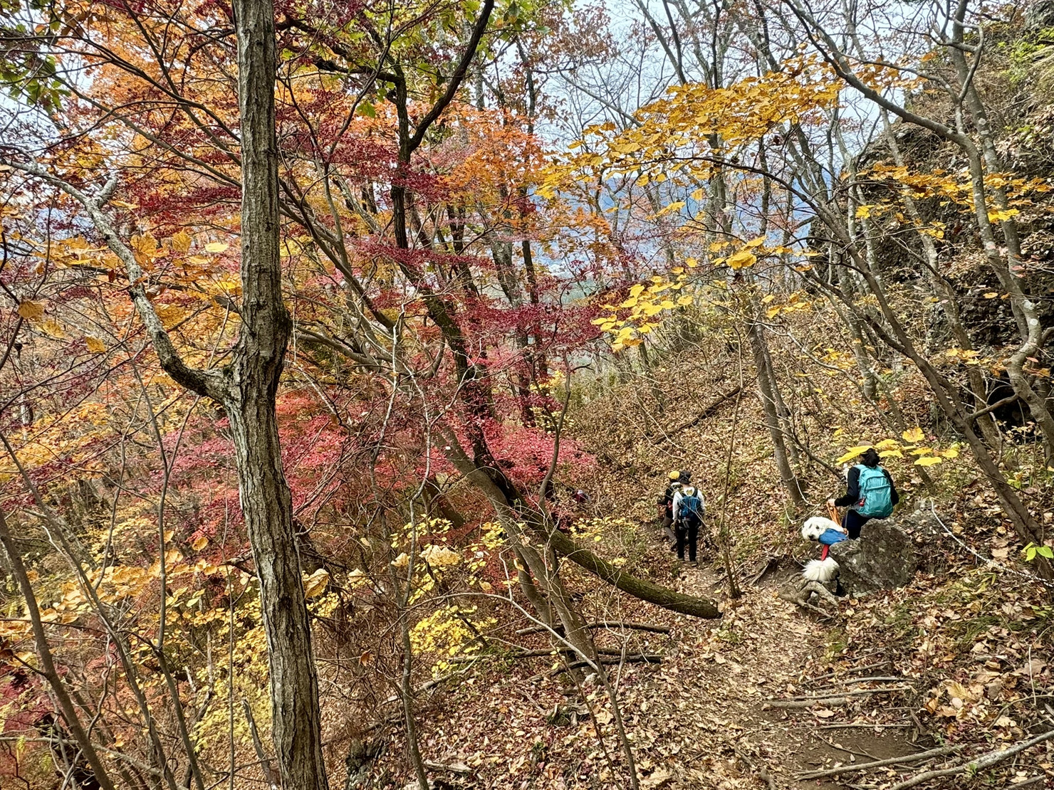 石尊山・群馬県|紅葉穴場の実力発揮!真っ赤と黄色が続く稜線を歩き続ける犬連れ登山