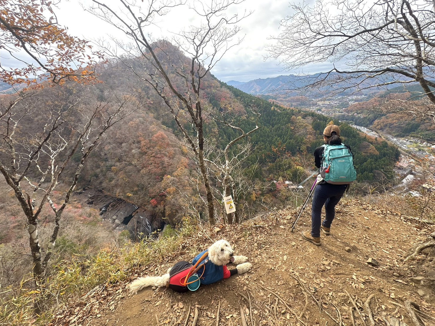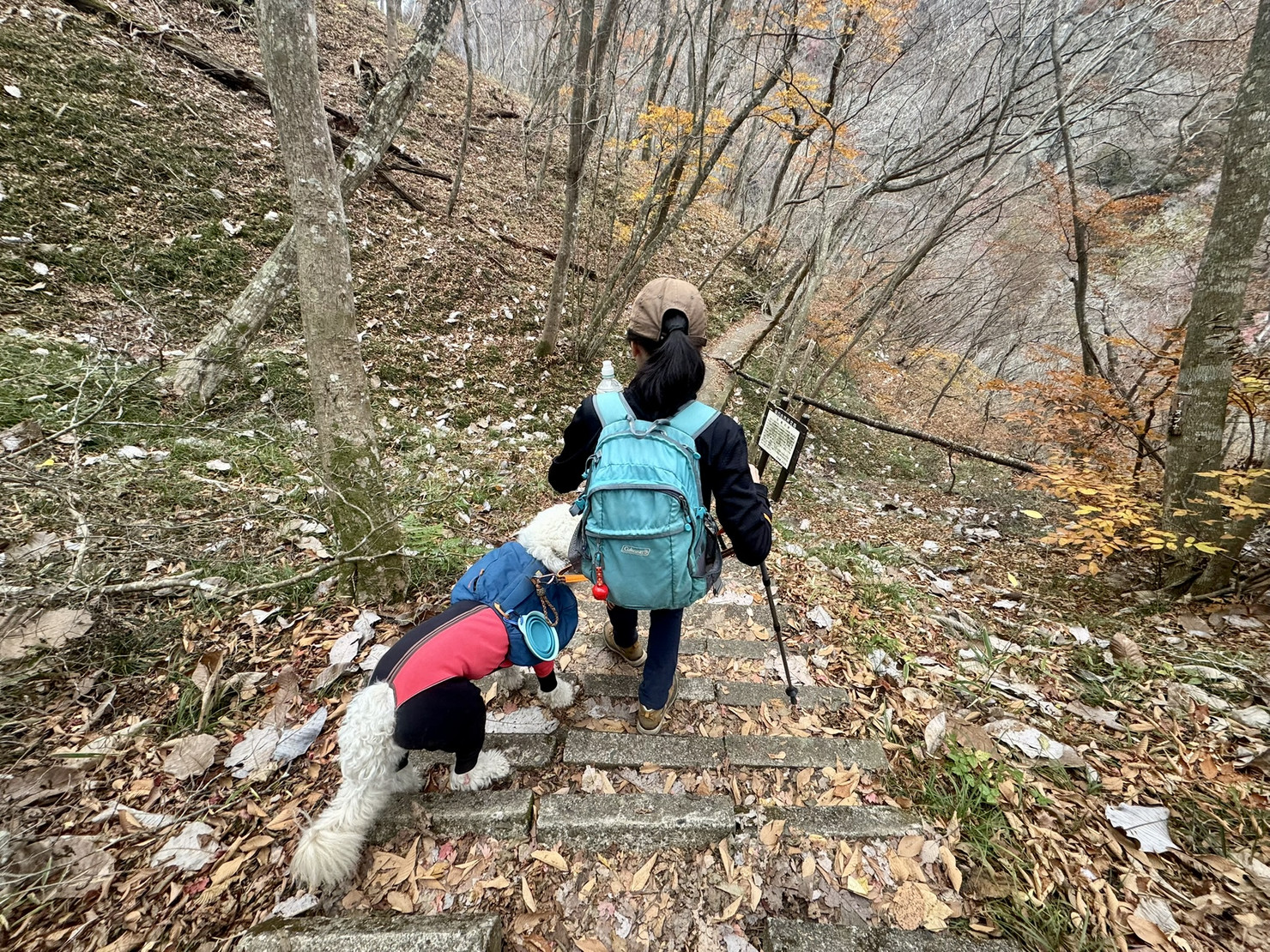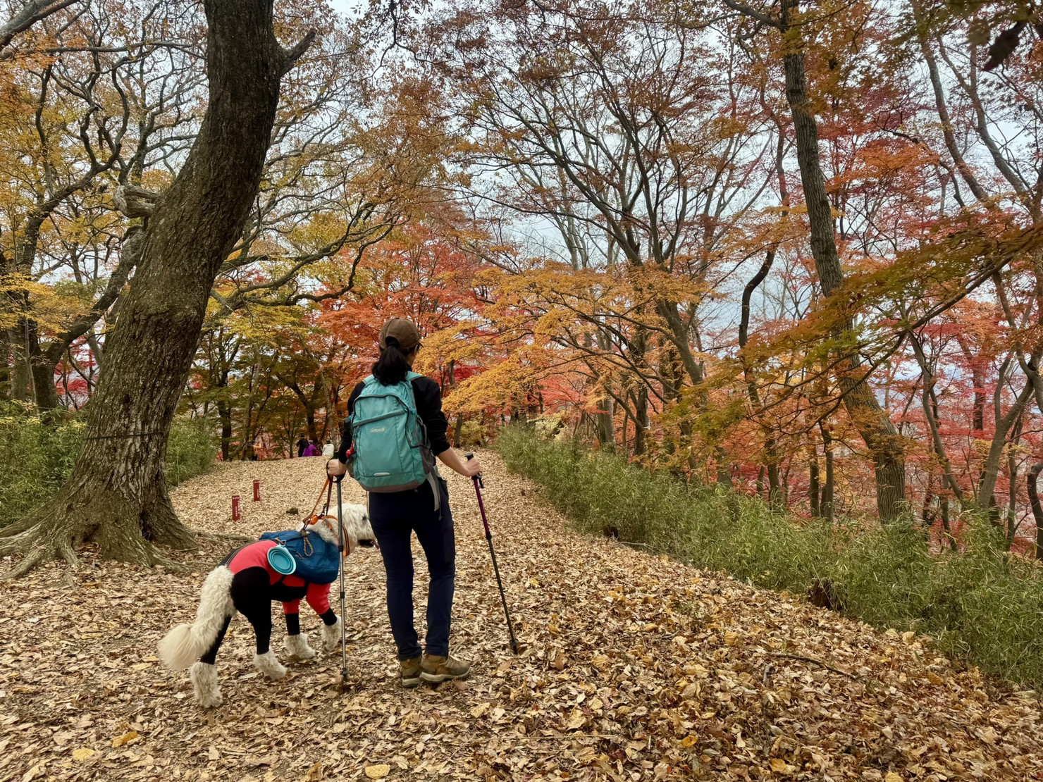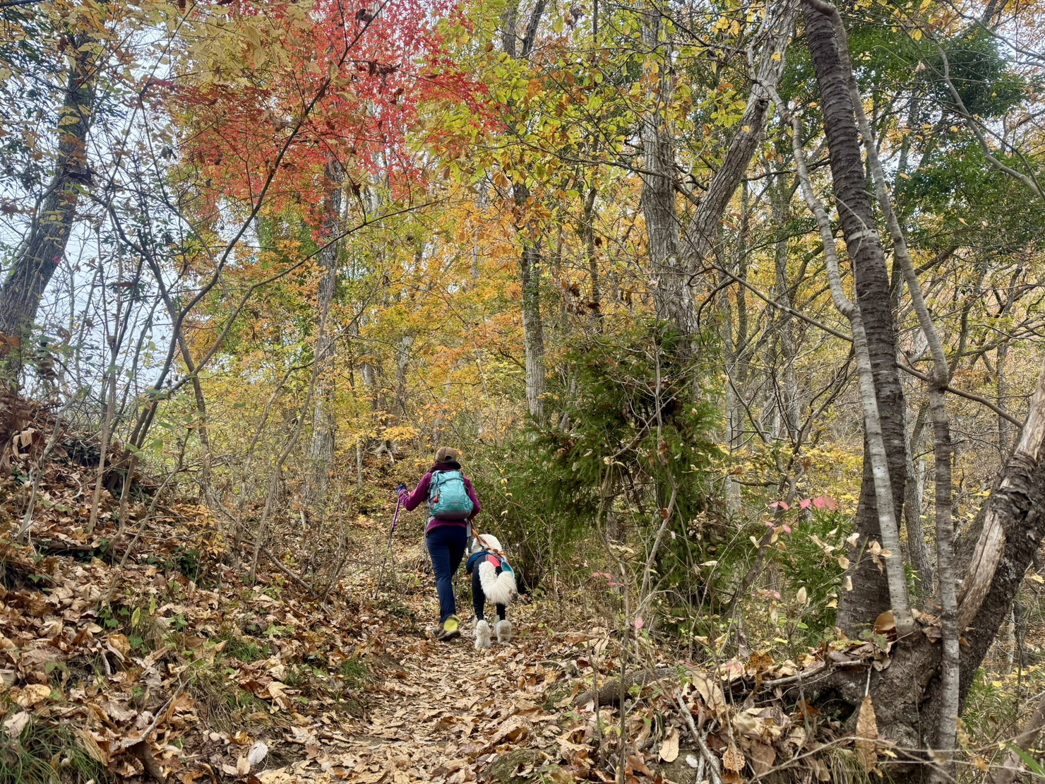 石尊山・群馬県|紅葉穴場の実力発揮!真っ赤と黄色が続く稜線を歩き続ける犬連れ登山