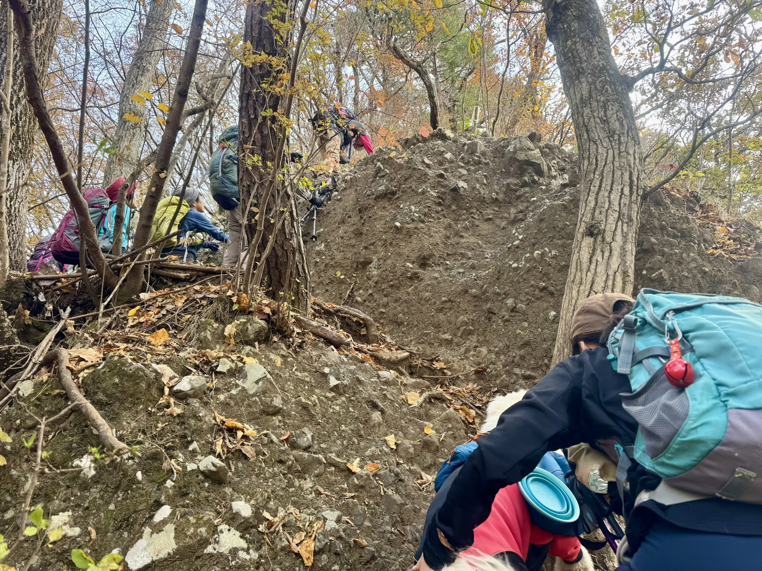 しかし、山頂近くでロープ場があり、山頂直下では高さ2m程度の岩壁がある。