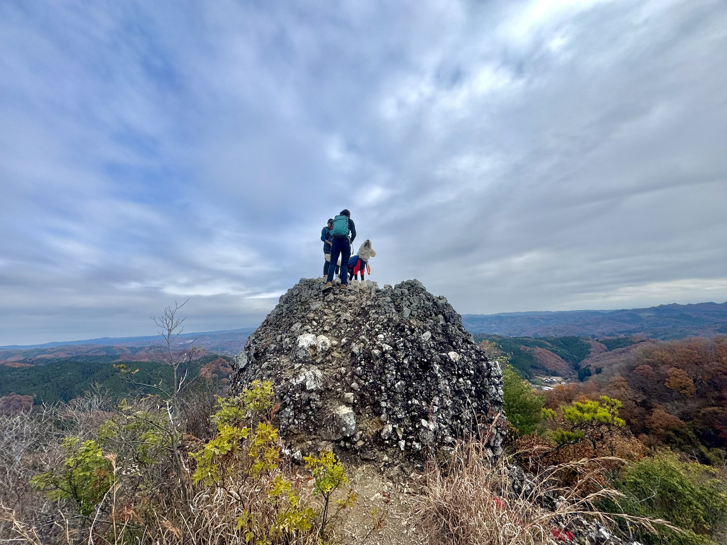 これまたゴツゴツの岩峰によじ登り、奥久慈を制覇した錯覚に全員で酔いしれる。