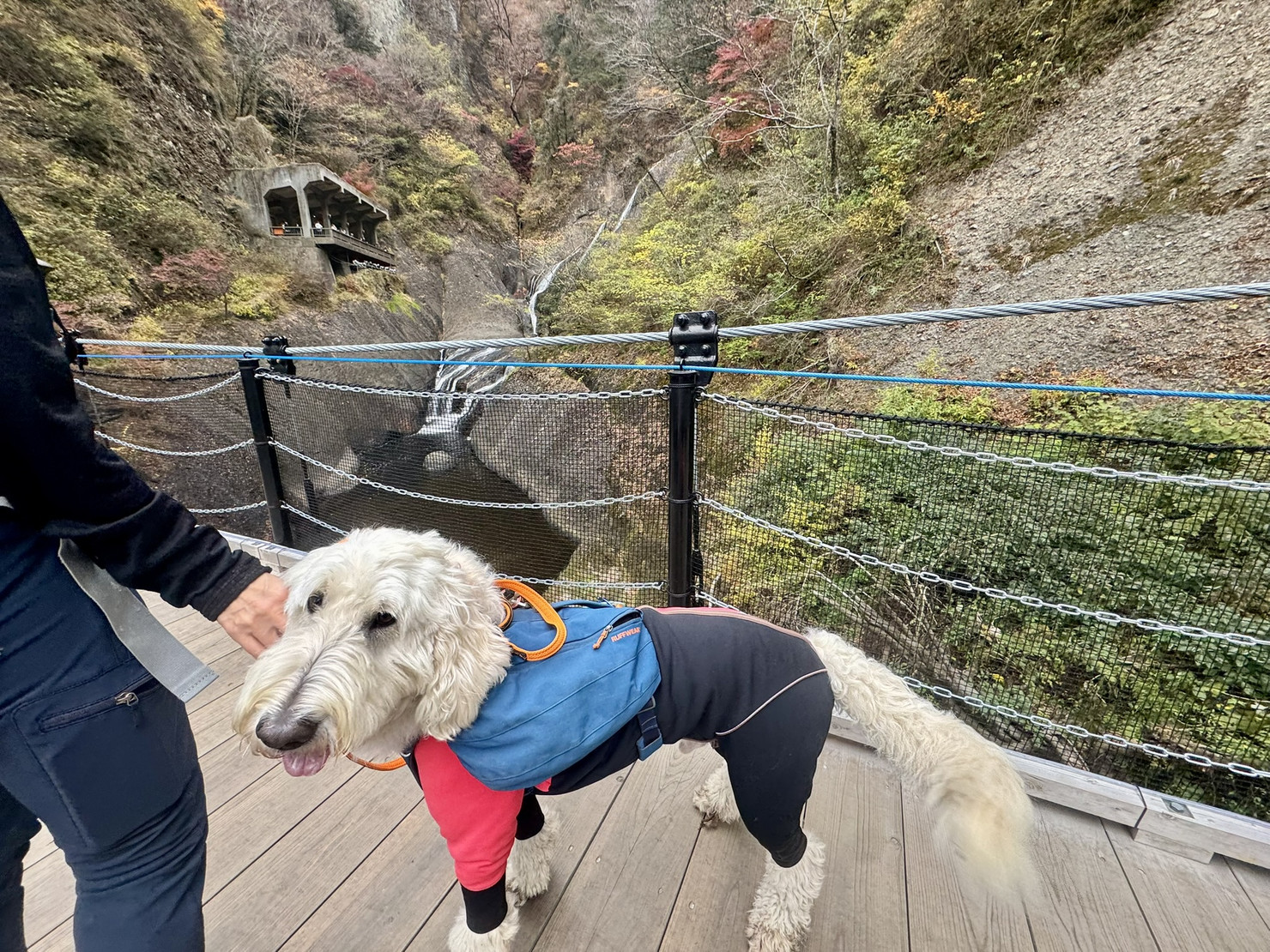 トラバースの幅が狭いが、大型犬でも歩けないことはない。