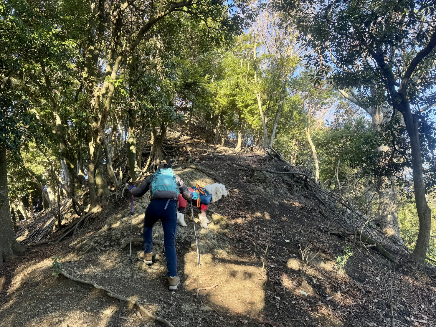 と思っていたら、物見塚山の手前で見上げるような急登が。