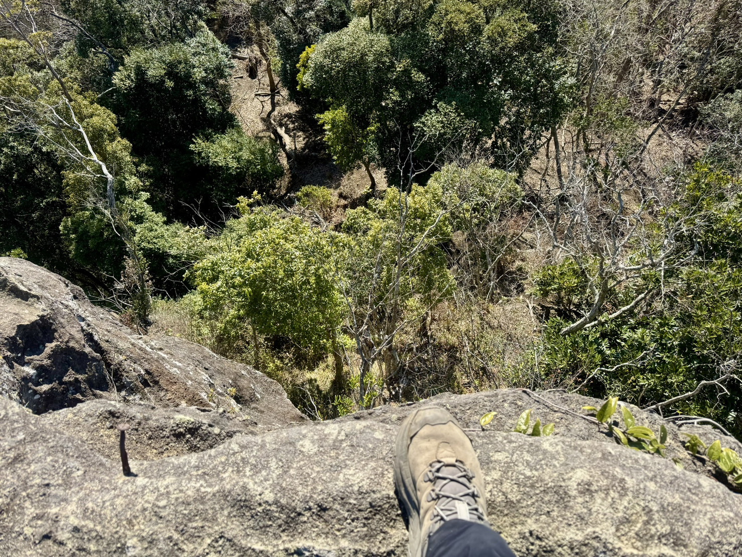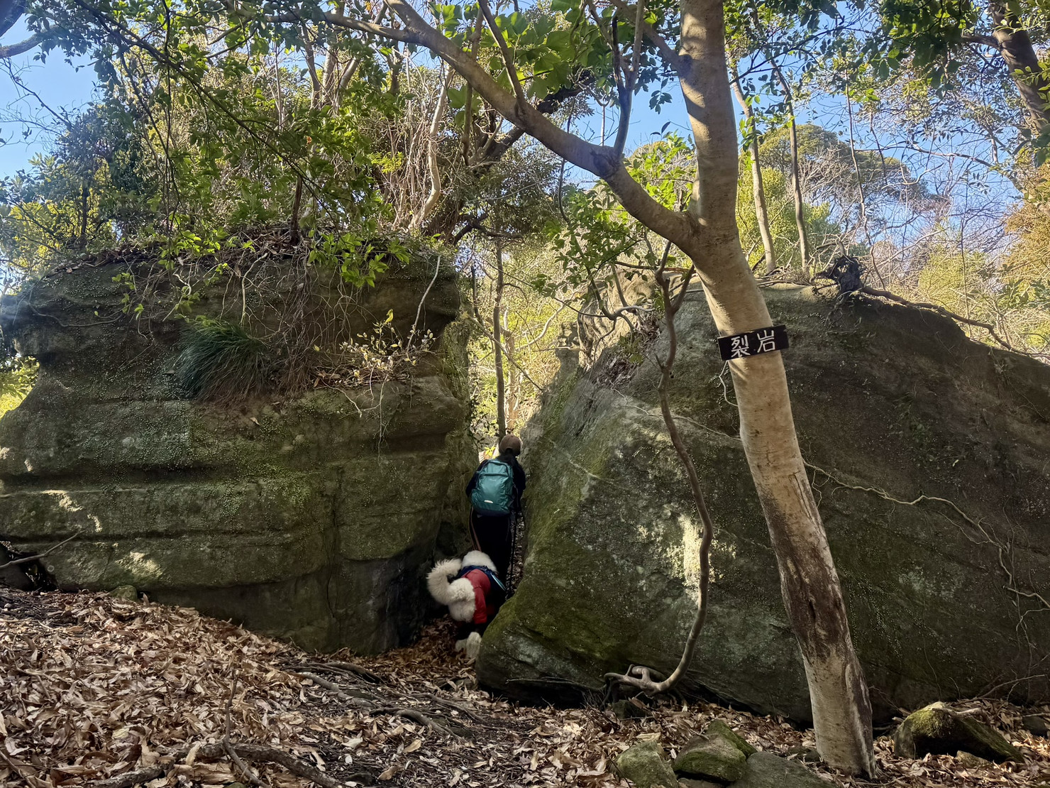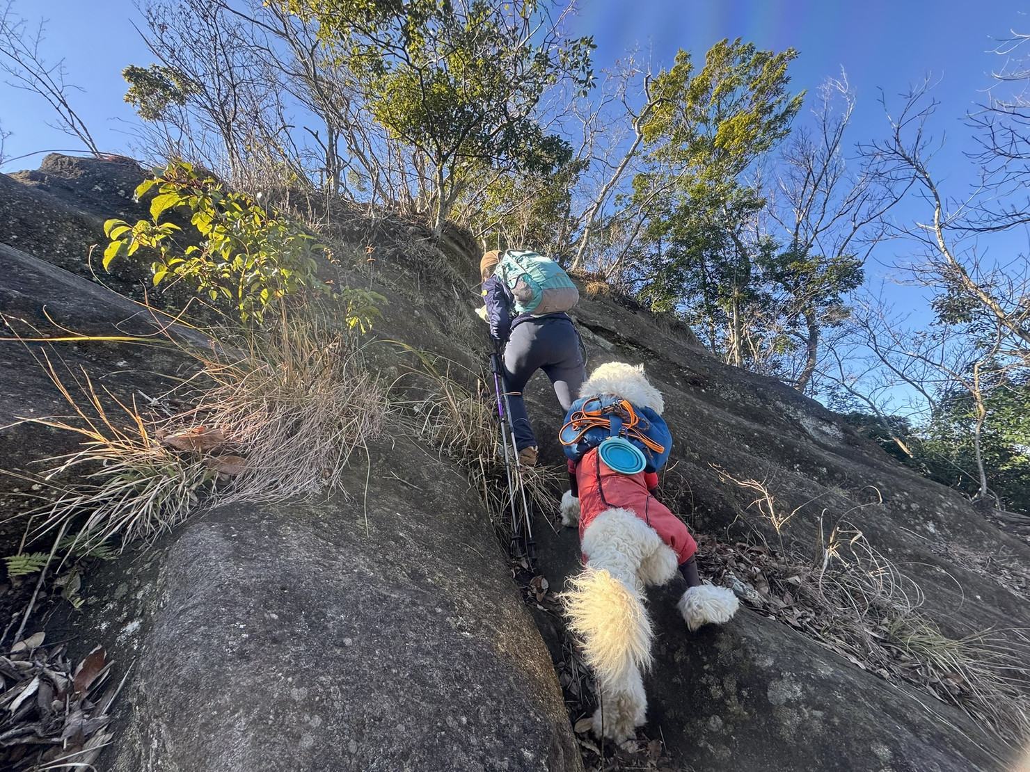 初心者や犬連れの人が山頂の絶景を味わいたいなら、この岩登りを覚悟で妙蔵寺側からピストンすることをおすすめします。