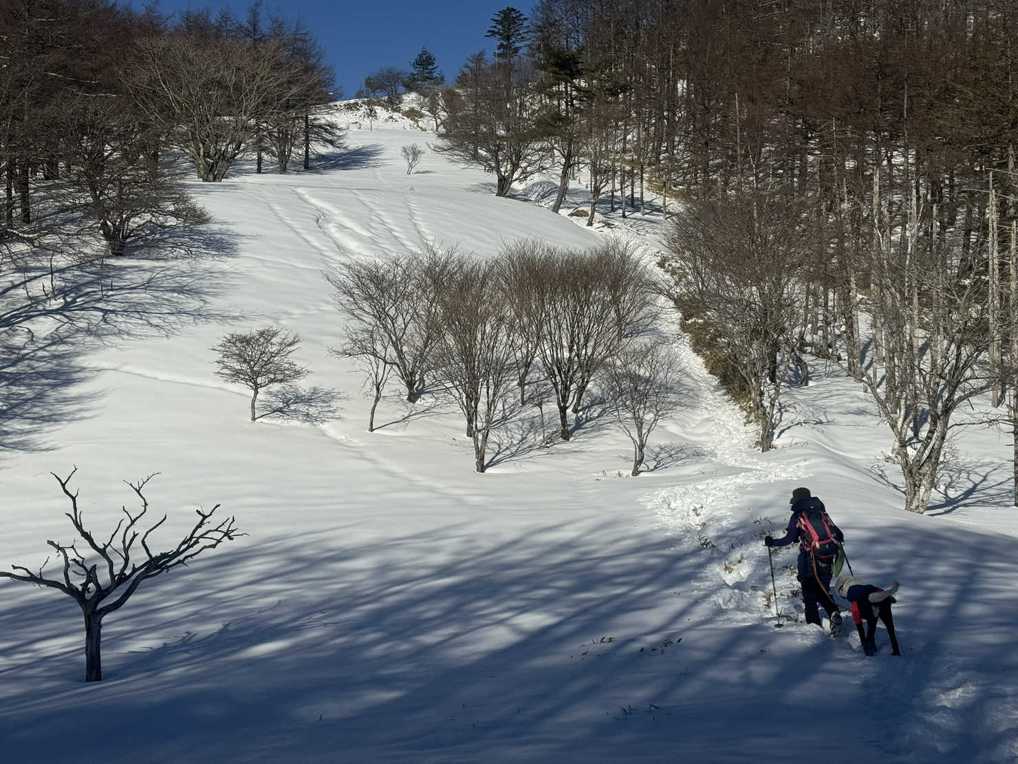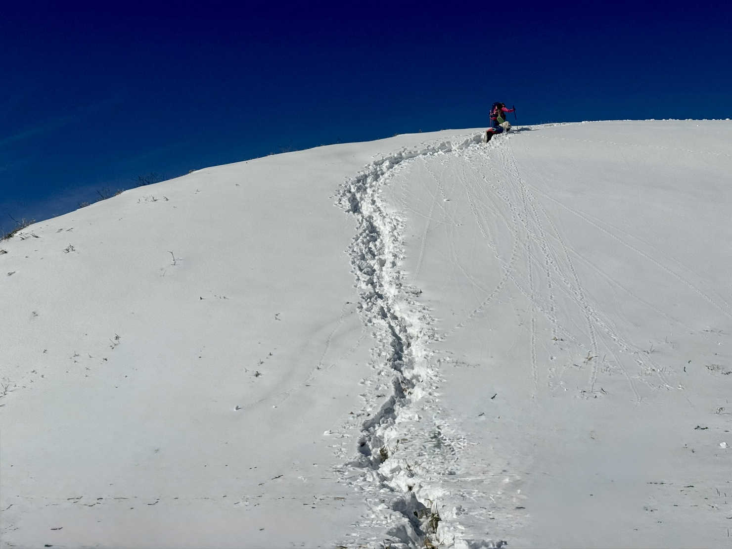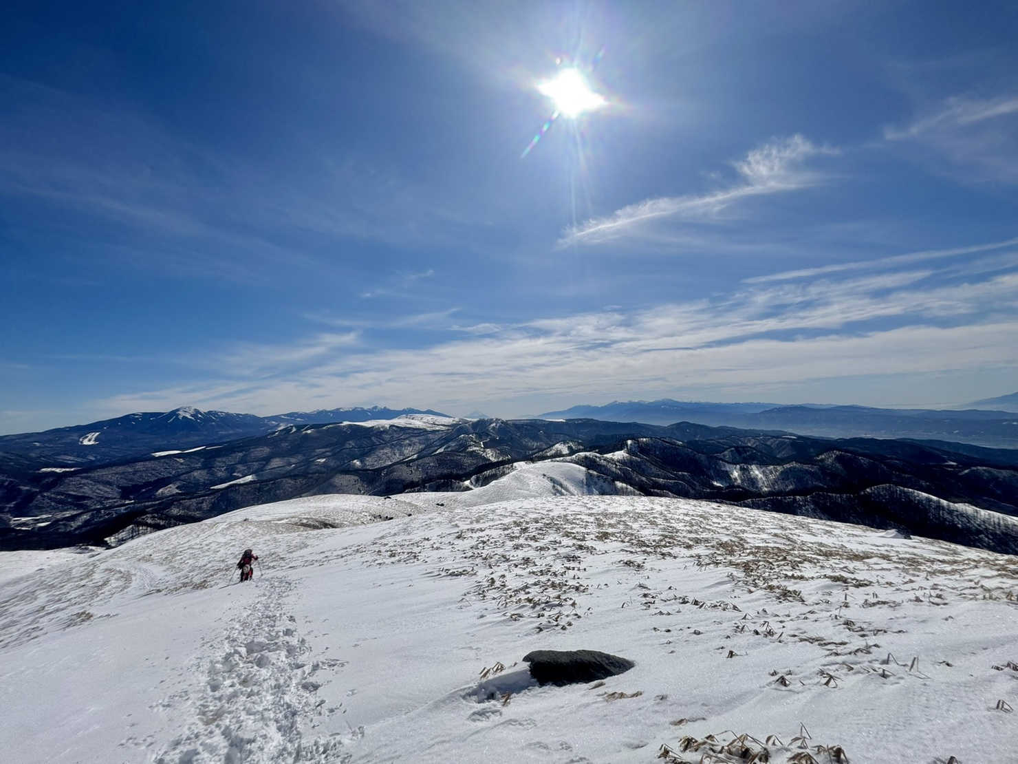 下山時も、延々と続く白銀稜線を貸切で闊歩する。